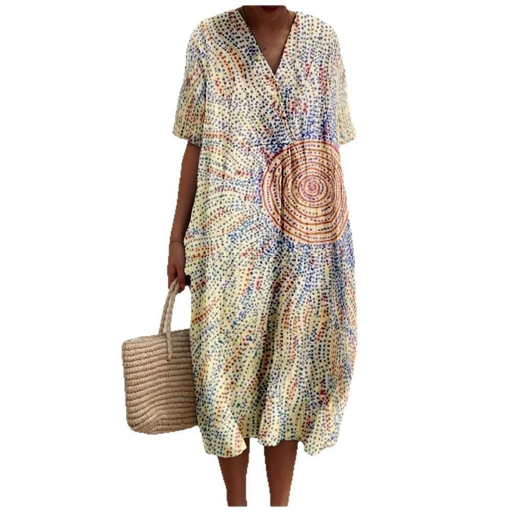 Women's Fashion V-Neck Short-Sleeve Shirt Dress